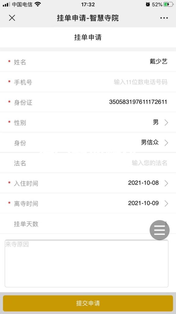 行腳師父可以通過網(wǎng)上查看寺院智慧寺院系統(tǒng),在寺院的功能板塊點(diǎn)擊掛單申請(qǐng)功能系統(tǒng)版塊,提前查看寺院的住宿情況,這樣大大為行腳師父知悉寺是否住宿額滿提供了方便之處。